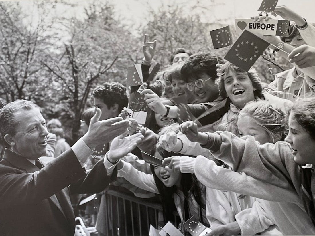 Whether it was fate or a stroke of luck, Christian Lambiotte's camera was able to immortalise this iconic moment wherein Jacques Delors welcomes with open arms the support of young people holding the European flag on May 29, 1985 in Brussels.