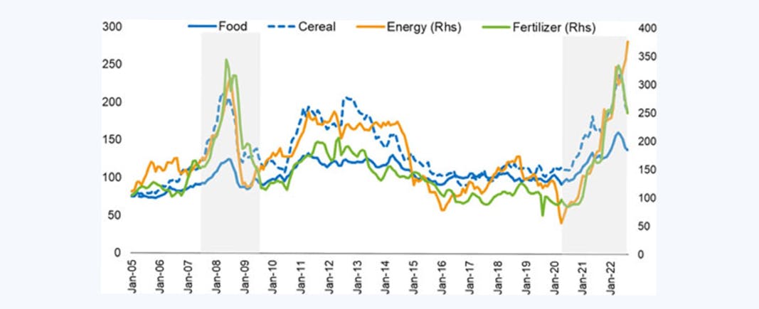 IMF Primary Commodity Price Indices, 2005-2022 (data until 15 Sept 2022) – (Indices:, 2016=100).