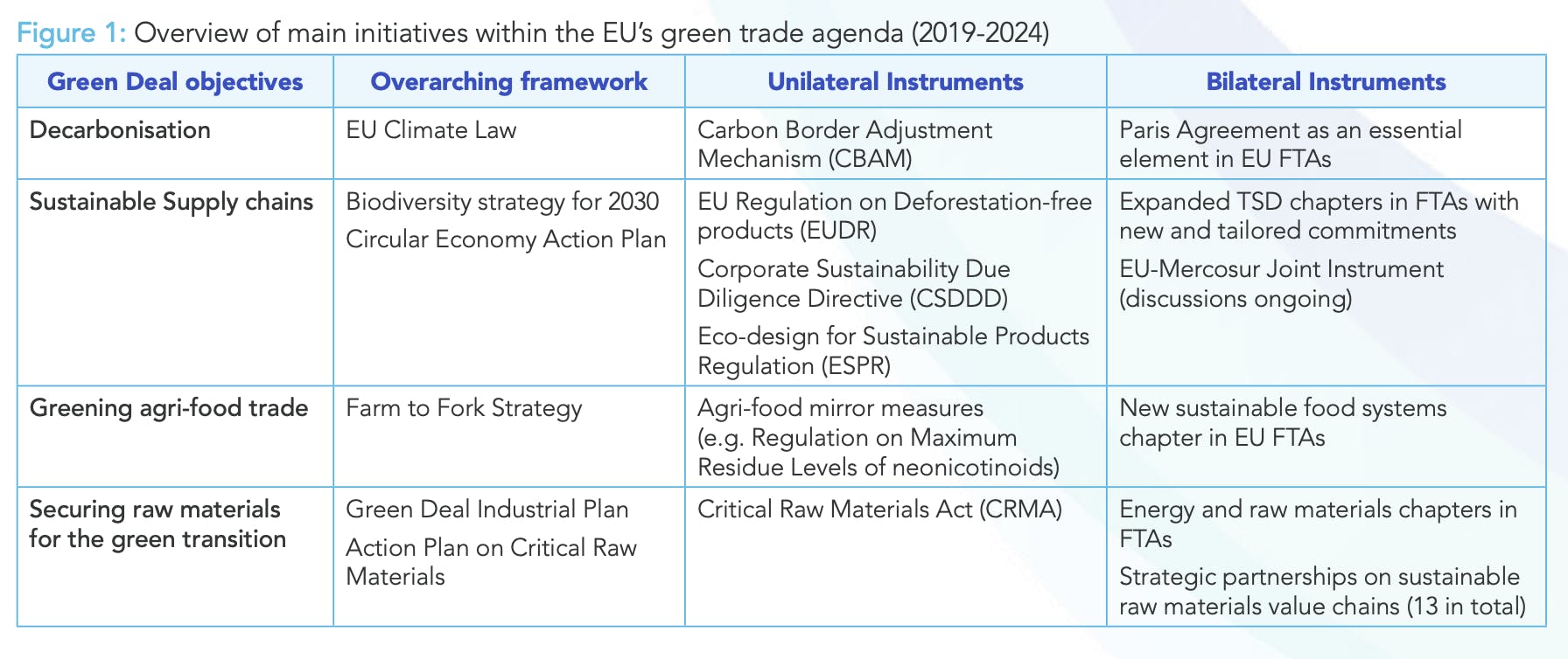 The primary task for the incoming Commission will therefore be to stand by the green trade agenda, ensure its adequate implementation, and resist pressures to backtrack, demonstrating that the green transition, both within Europe and globally, is fundamental to European competitiveness. To do so, this paper highlights key trends and offers 5 policy recommendations on how to implement and improve the EU's green trade agenda in the new EU cycle.